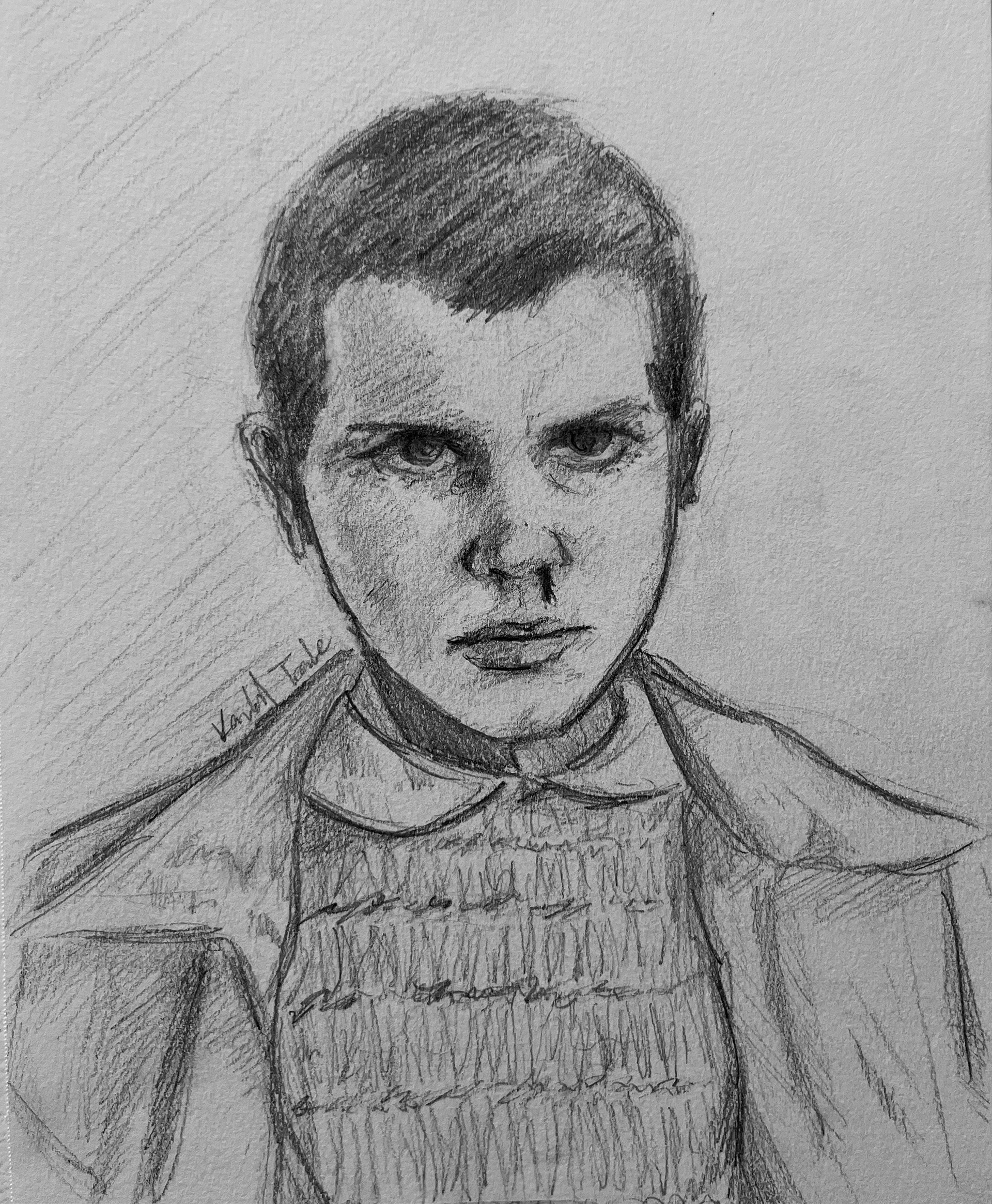 While watching the popular TV show Stranger Things, I sketched one of the main characters, whose name is Eleven. I allowed myself 30 minutes to draw and shade. This was a quick study to gauge how fast I can render a person.