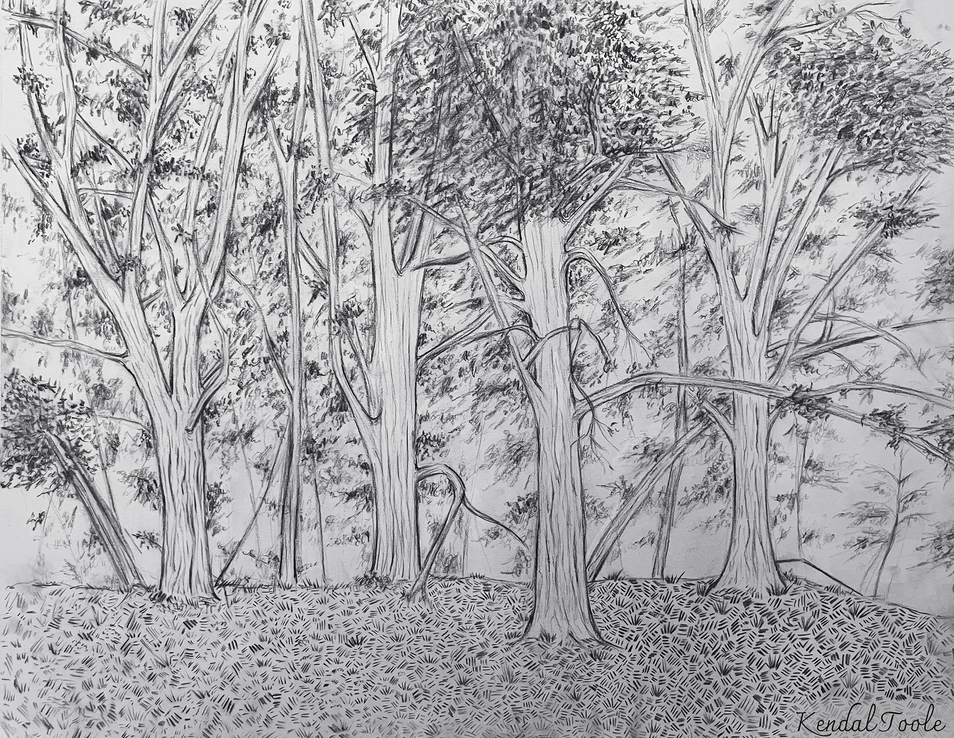 BURNET WOODS, Bristol paper & charcoal pencil, 2024, 19 x 24 in